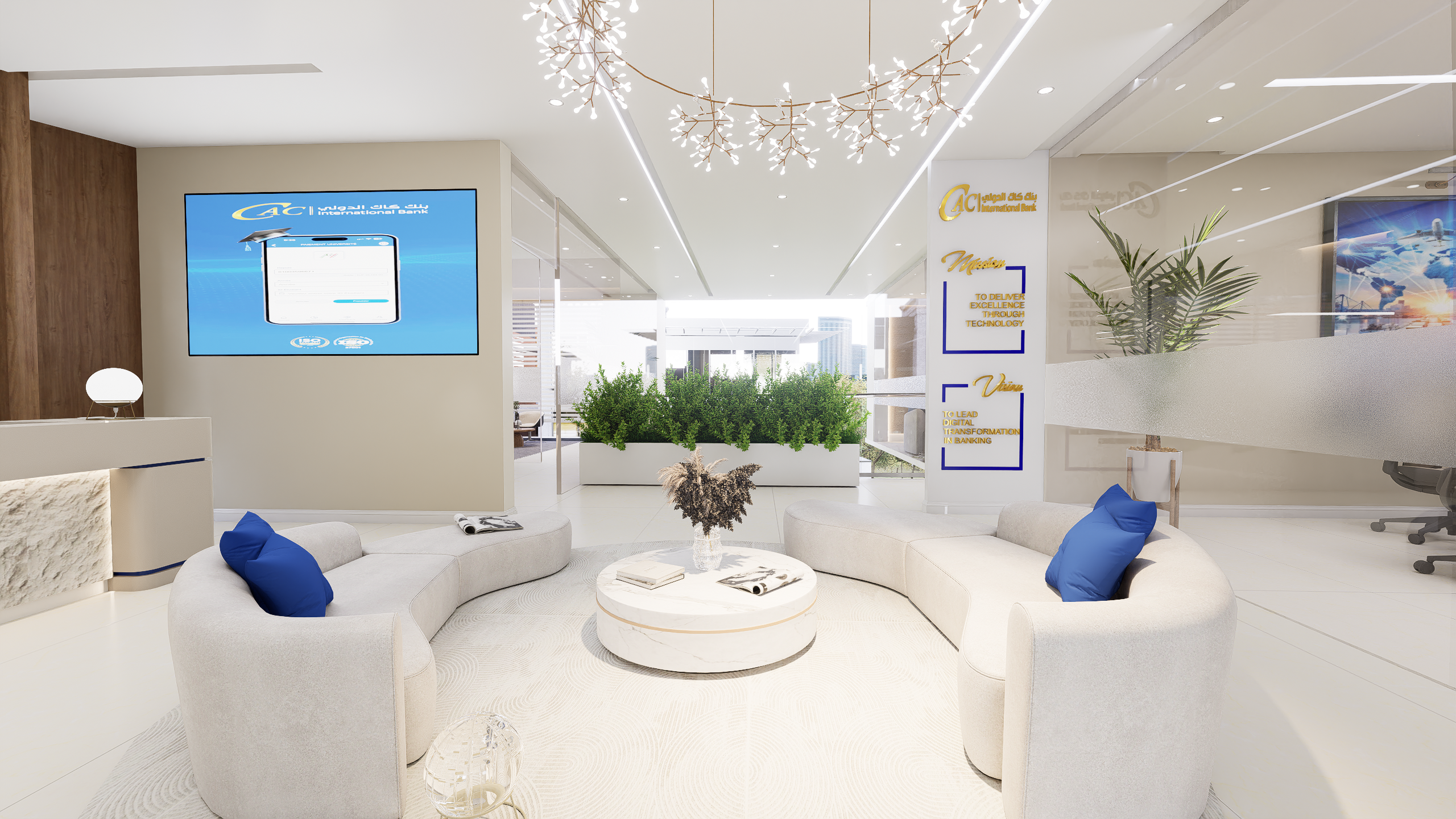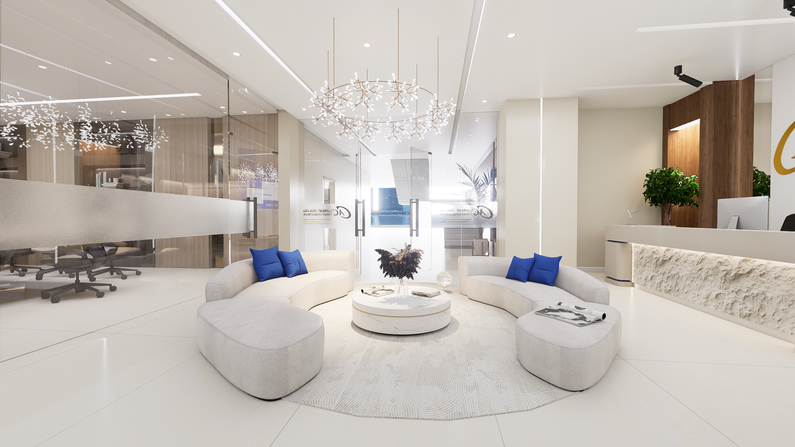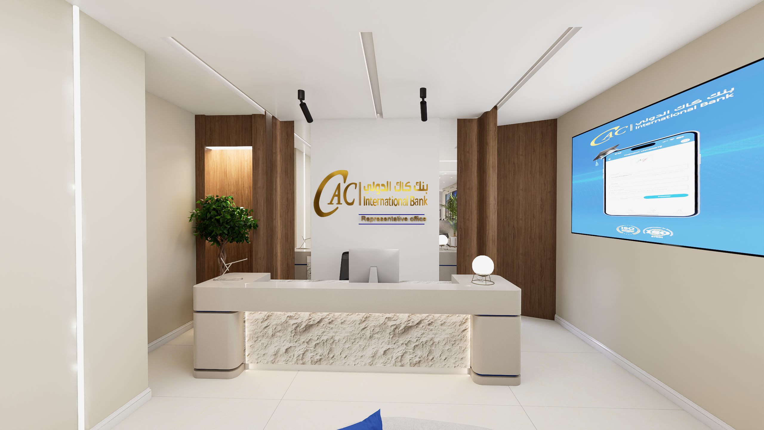 The CAC International Bank Representative Office was designed as a refined and contemporary workspace that reflects international banking standards and a strong corporate identity. The concept focuses on creating a professional environment that balances elegance, functionality, and brand representation, using high-quality materials, clean lines, and a cohesive design language.